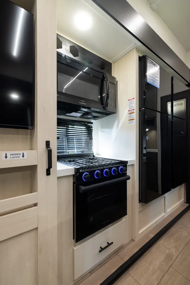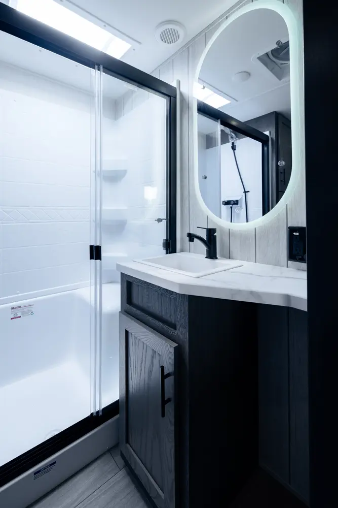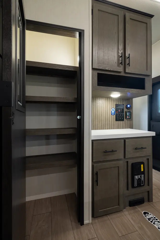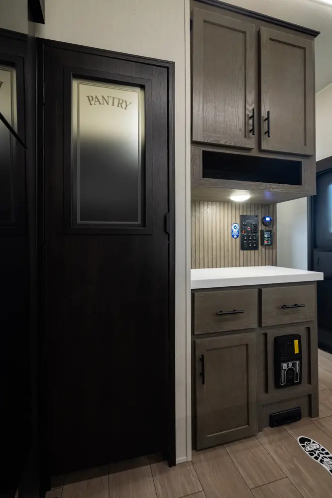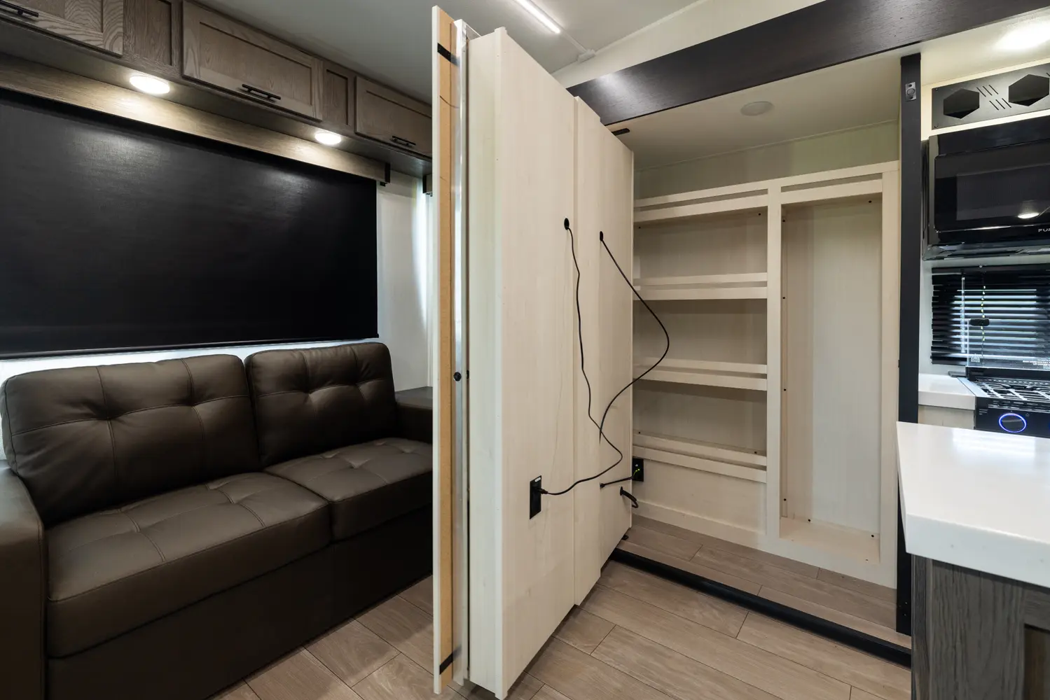 Versatility is the name of the game with the Arctic Wolf 3650SUITE by Forest River. The bonus room located in the middle of this model is highlighted by a desk, trundle bed, drop down bunk, jack knife sofa and a loft overhead. The living room is flanked by big windows for natural light and the entertainment center doubles as a large hidden pantry. For extra sleeping, both the trifold sofa and dinette convert into extra beds when not in use. Up front you'll find a king bed and full bathroom.