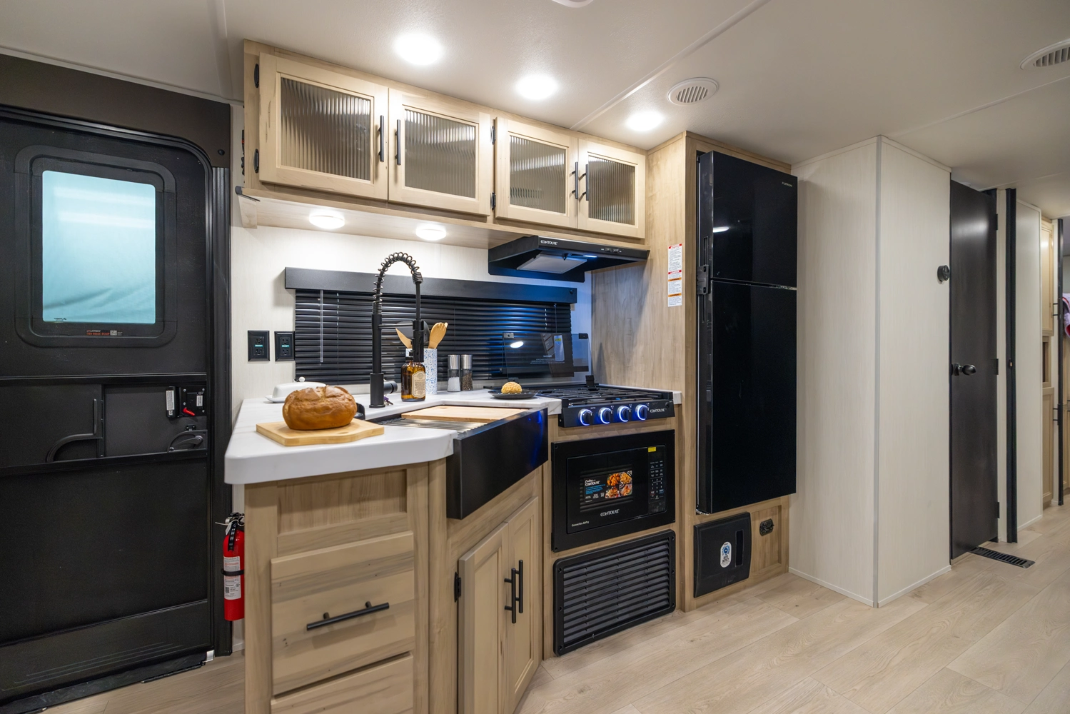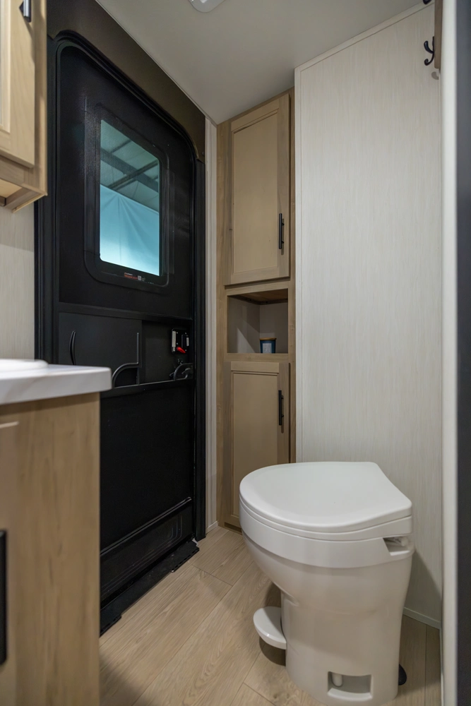 • Blackout Glass, Safety Slam, Friction Hinge Entry Door with Window and Shade Prep (N/A on LP models)