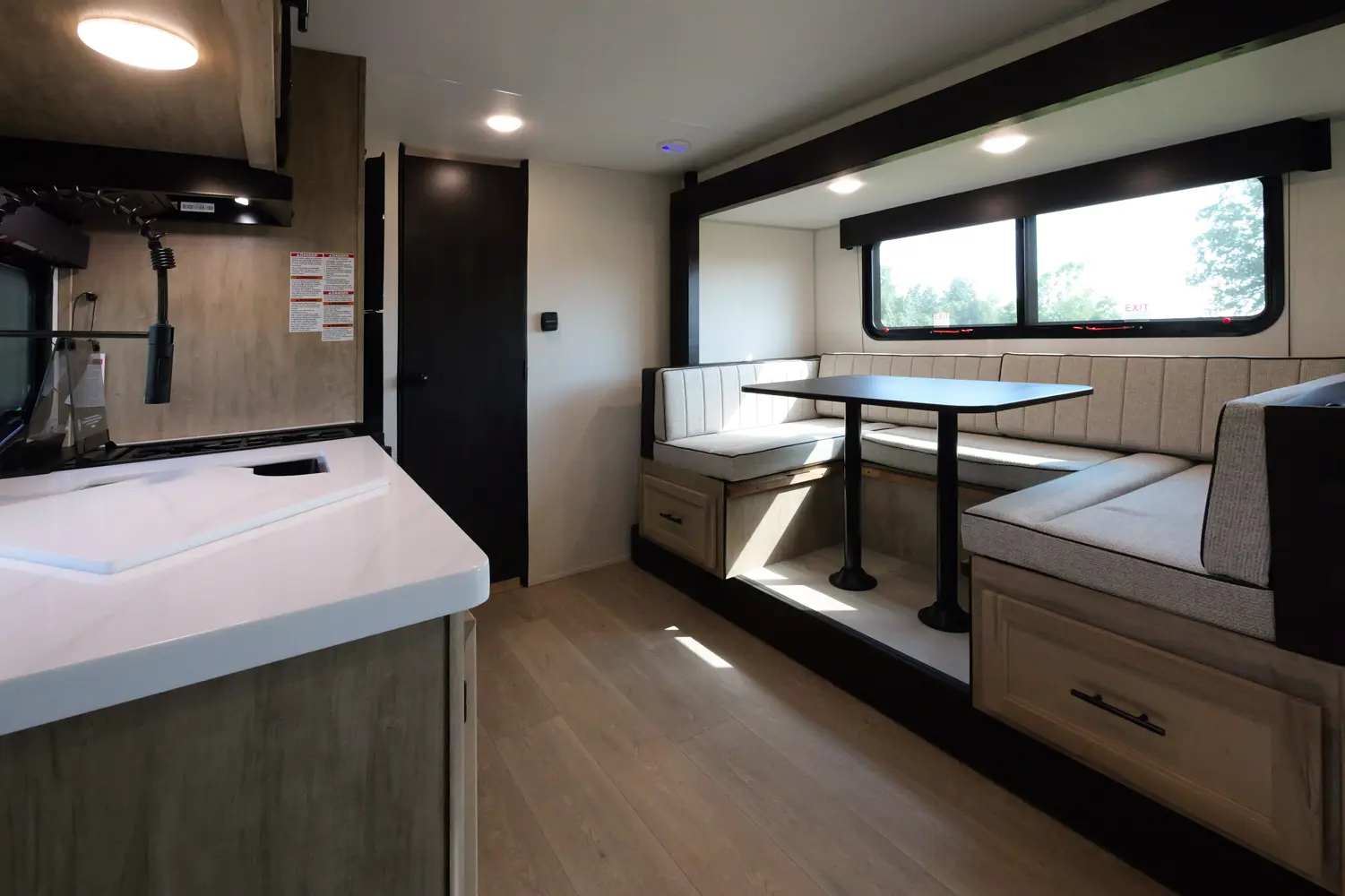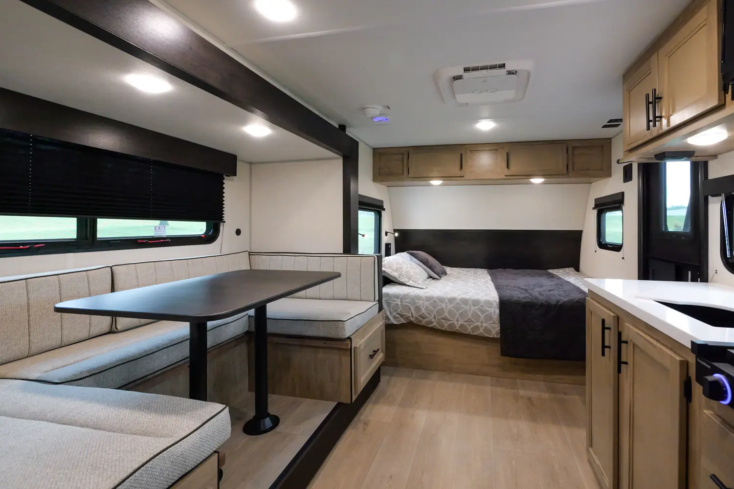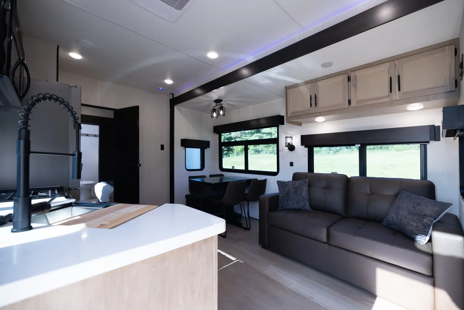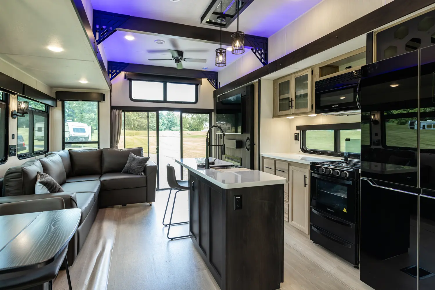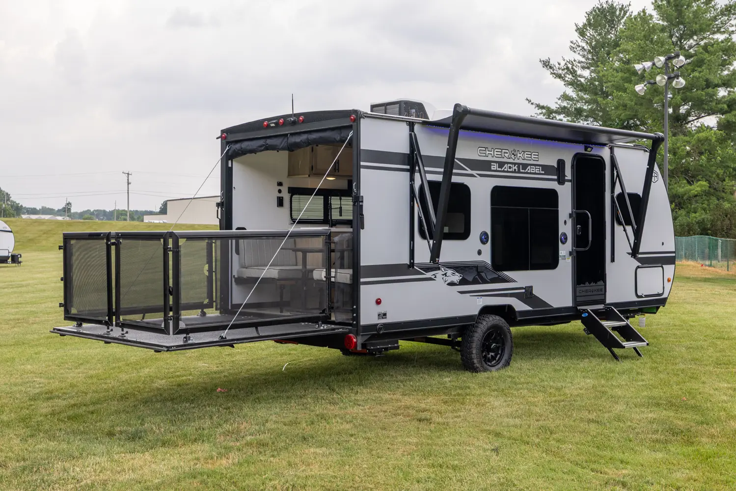 Take your camping experience to the next level on any Cherokee model with our Black Label upgrade. Notable upgrades include fiberglass gel coat sided walls, frameless windows, thermo-foil arctic insulation, upgraded solid surface countertops upgraded reading lights and designer cushion fabric.