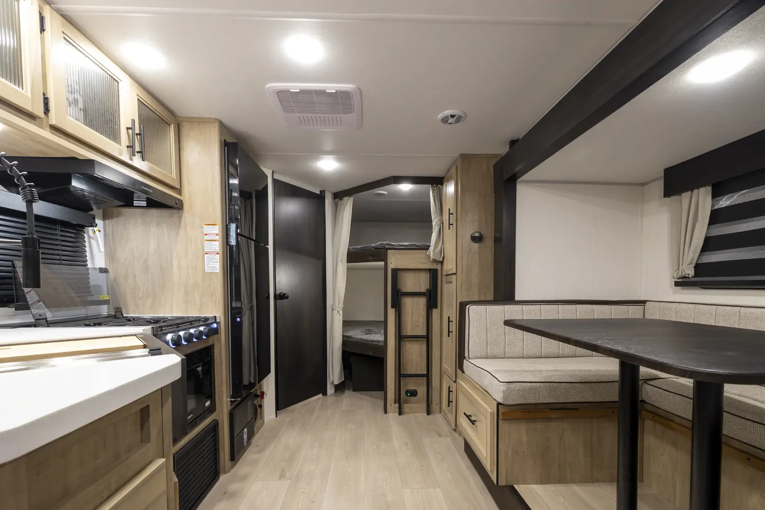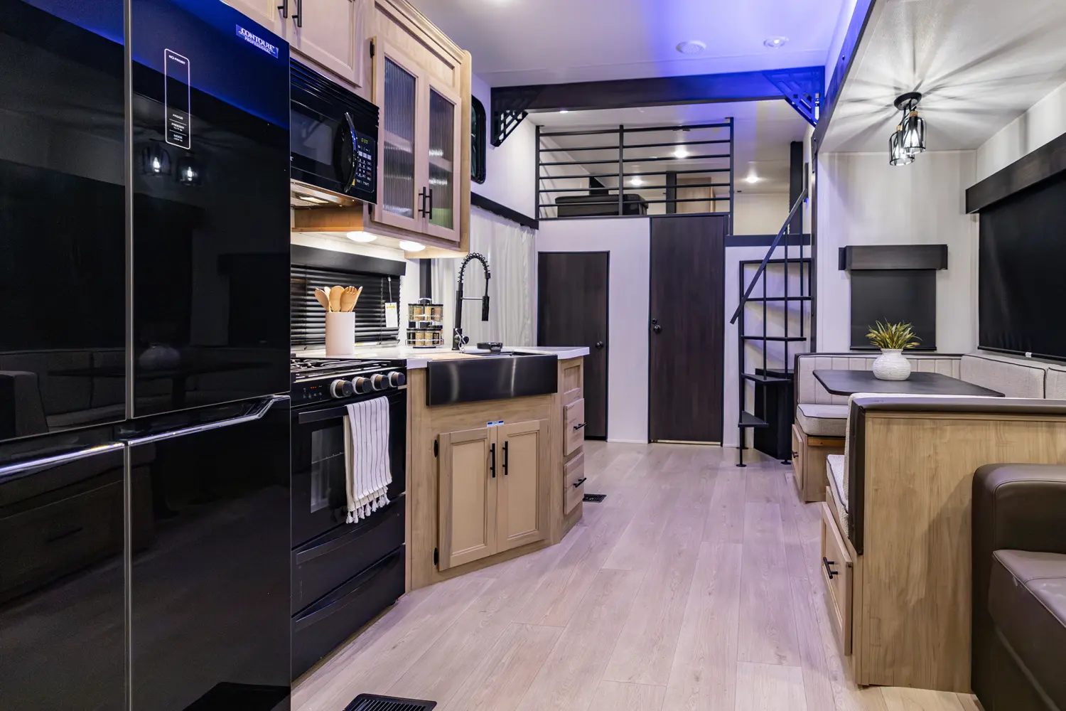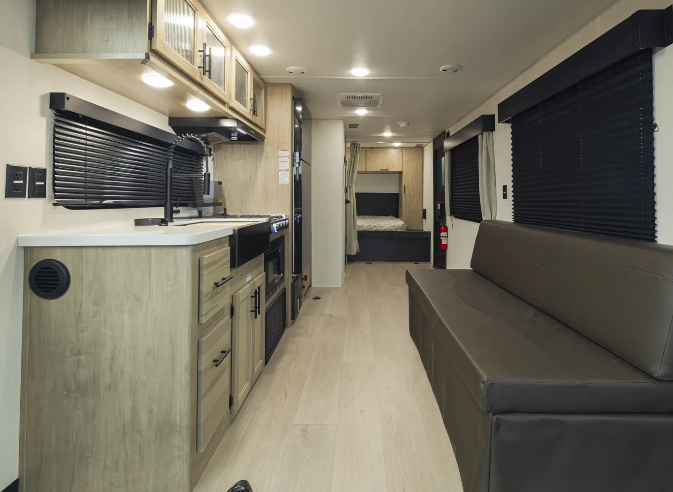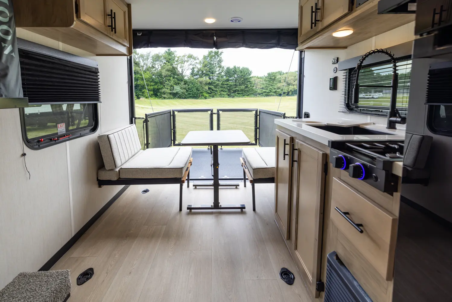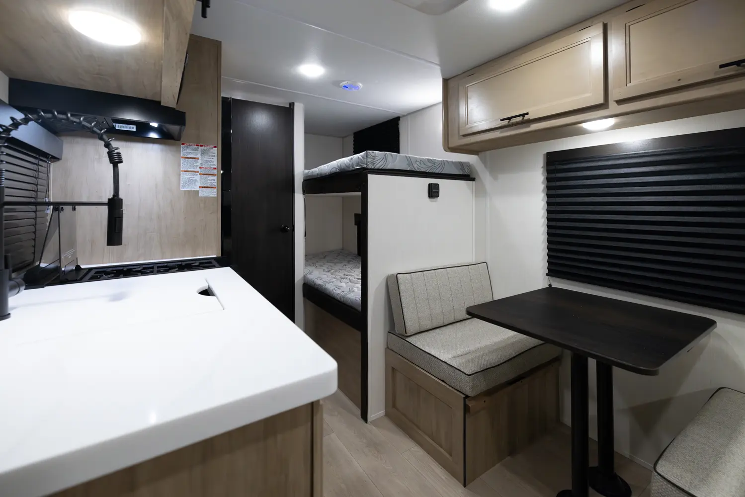 Take your camping experience to the next level on any Cherokee model with our Black Label upgrade. Notable upgrades include fiberglass gel coat sided walls, frameless windows, thermo-foil arctic insulation, upgraded solid surface countertops upgraded reading lights and designer cushion fabric.