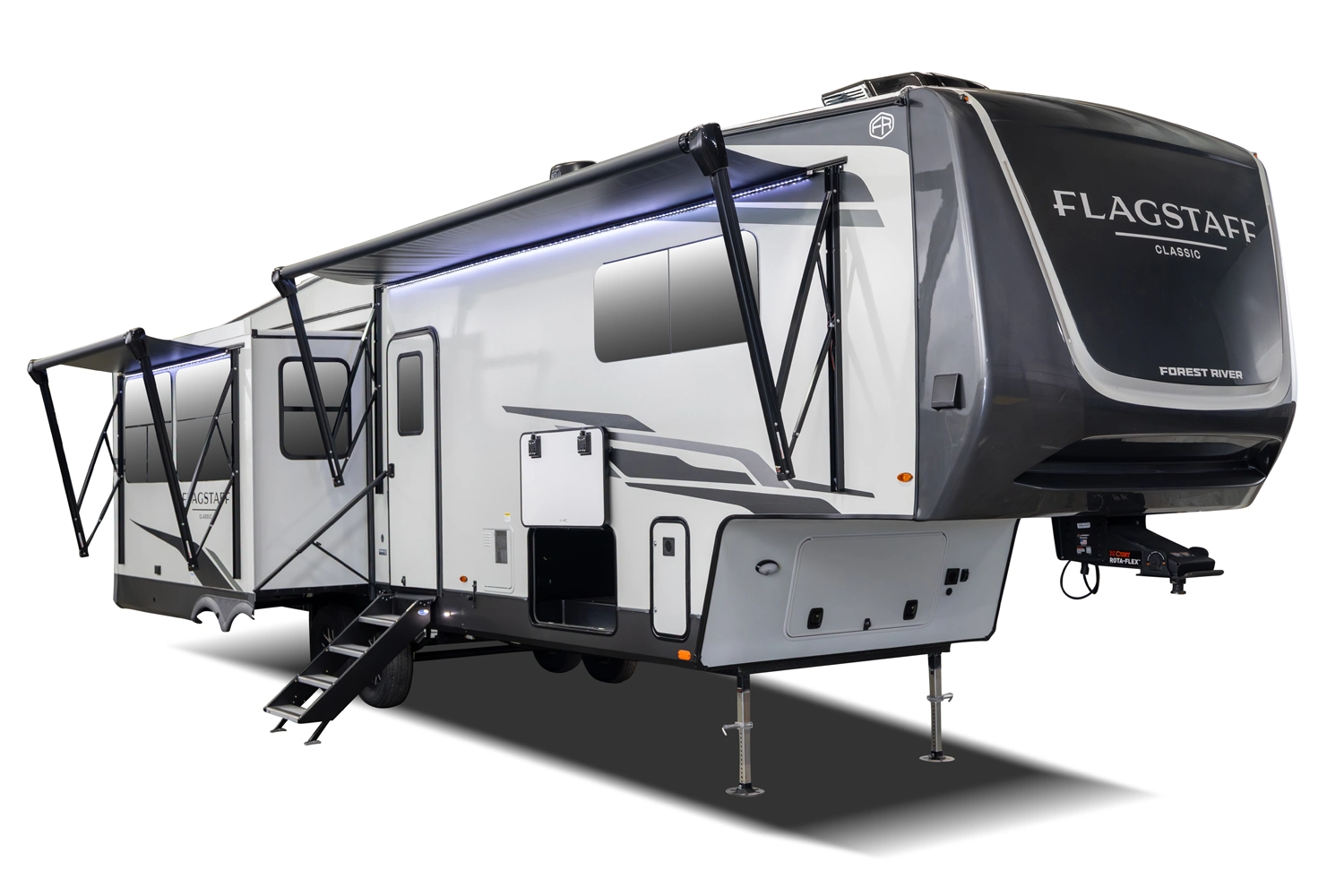 • Power Awning w/ Adjustable Rain Dump & LED Light Strip