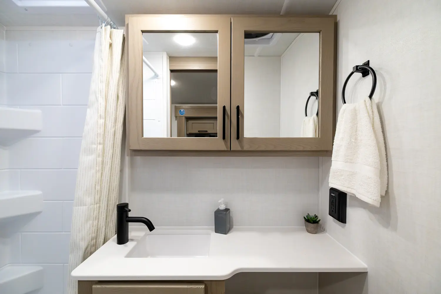 The E-Pro 19RL brings big comfort to a compact trailer. It’s the first E-Pro with theater seating, giving you a more relaxed and residential feel inside a lightweight camper. The smart rear living layout, efficient kitchen, and versatile sleeping space make it perfect for couples who want easy towing without sacrificing comfort or modern features on the road.