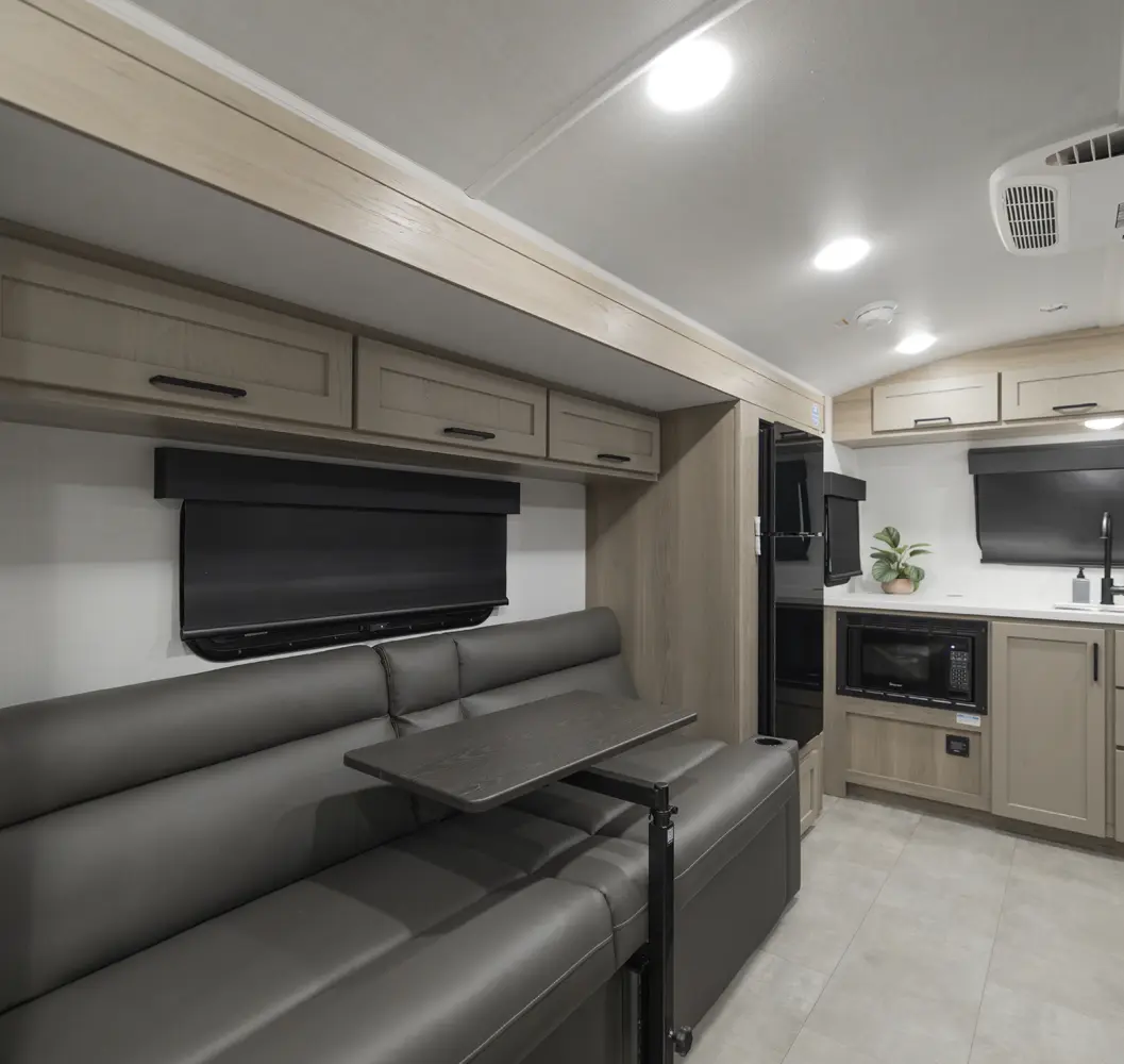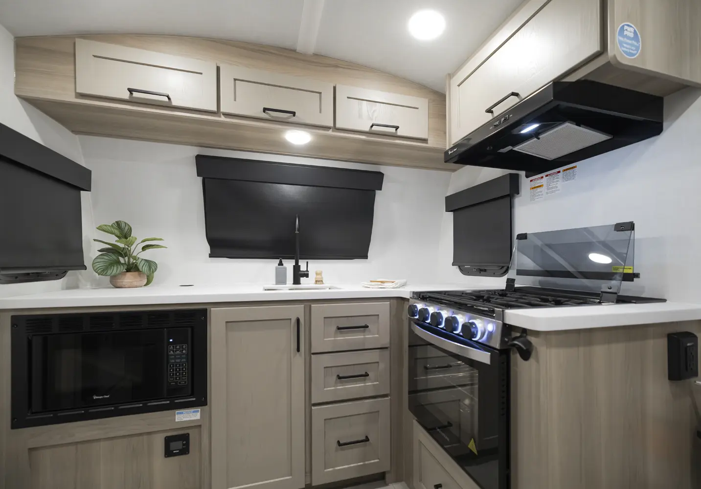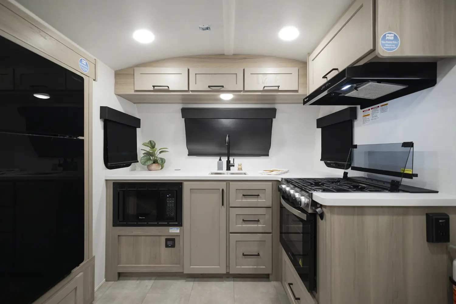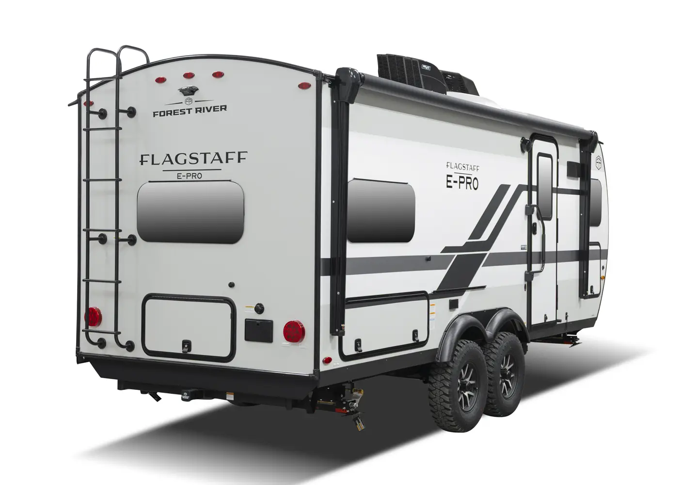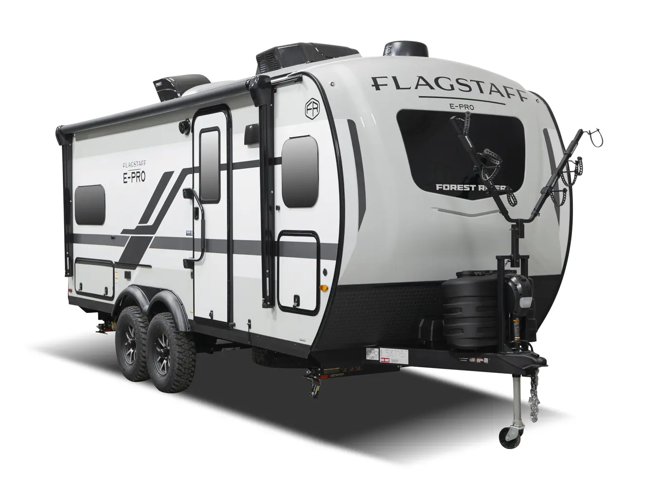 The 20FK is a compact trailer packed with big features! Our first dual axle E-Pro gives you improved stability and towing confidence in a lightweight design. The front kitchen offers excellent counter space while the rear sleeping area and slide-out create a comfortable, open living space. At just over 21 feet, and around 4,200 lbs., the 20FK delivers easy towing with the durability and off grid features that Flagstaff is known for.