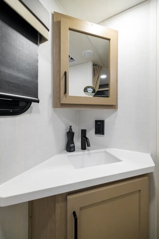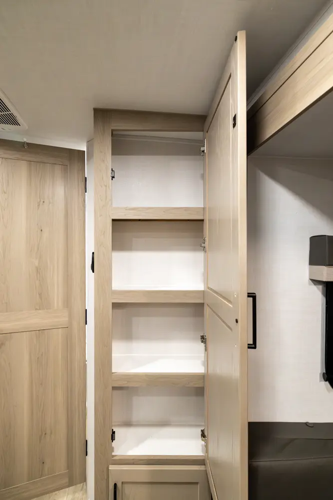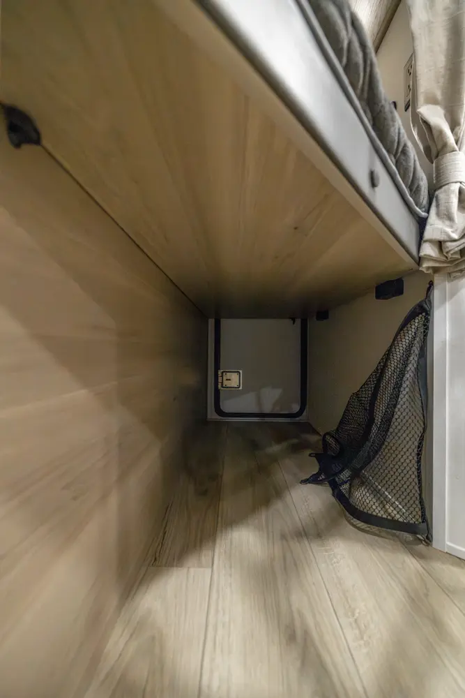 This is the perfect family trailer towing under 26' feet. The double 48" X 72" bunkhouse is awesome for sleeping the kids and even fits adults comfortably. The bottom bunk folds up for even more storage and toys will fit nicely underneath! The big 60" X 74" murphy bed folds up into a sofa for daily use. The giant 18' awning goes almost all the way across your unit while covering the outside kitchen.
