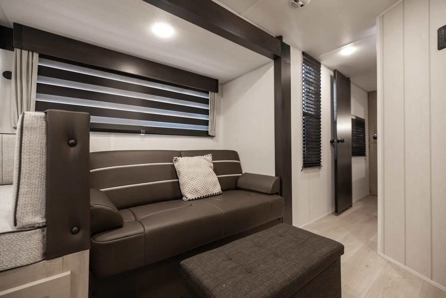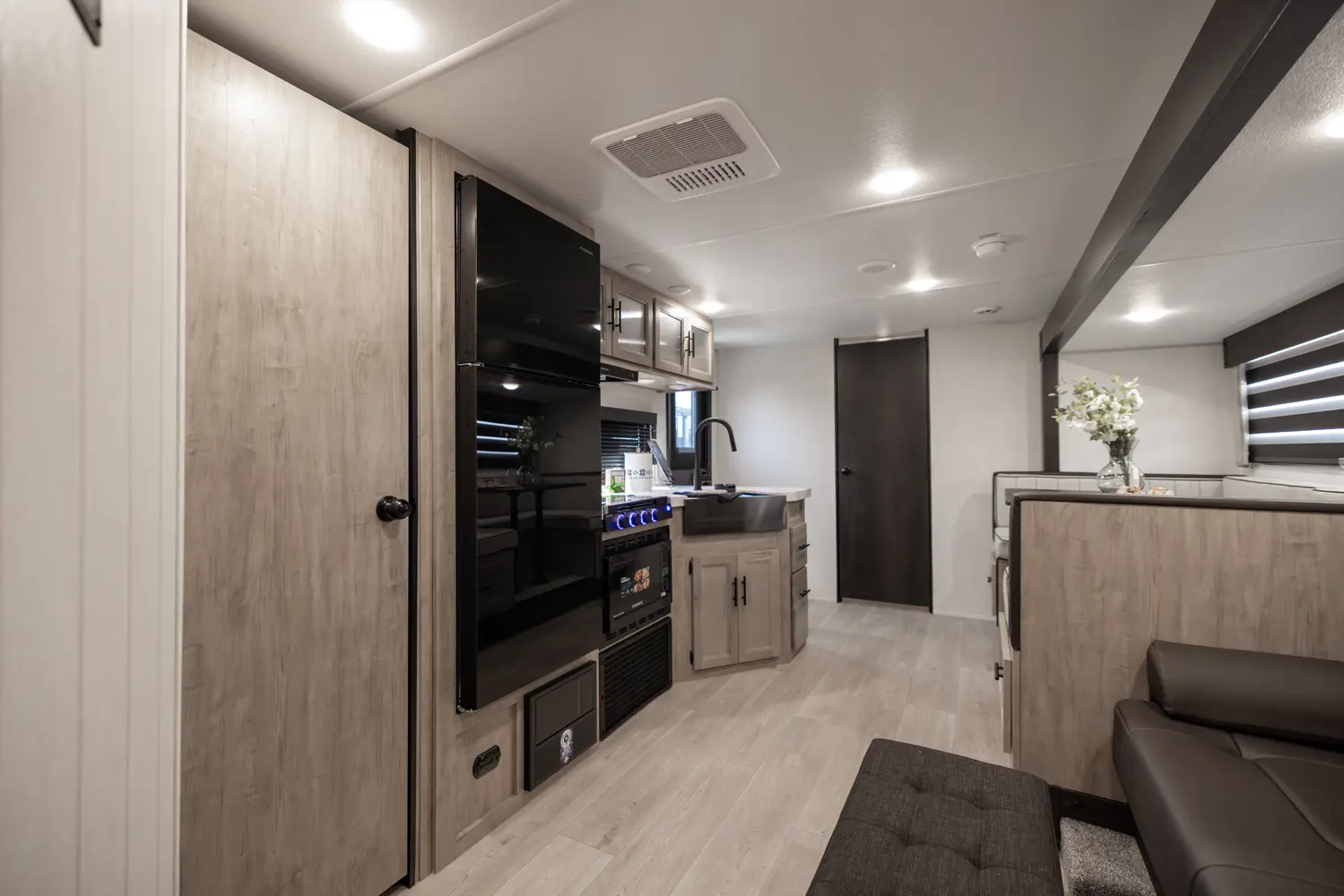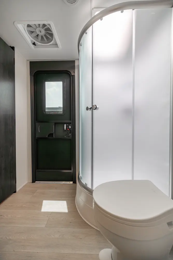 • Blackout Glass, Safety Slam, Friction Hinge Entry Door with Window and Shade Prep (N/A on LP models)