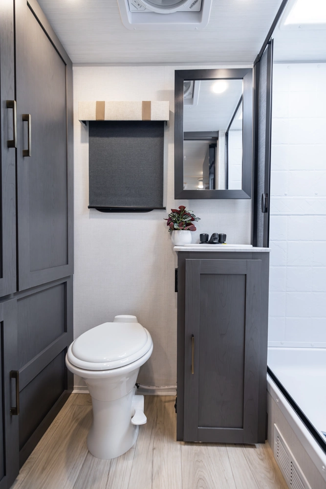 The 19QRB is a feature-rich, tow-friendly travel trailer that blends comfort, function, and durability. A front queen bed provides a cozy retreat with ample storage, while the central kitchen, complete with a large fridge and air fryer microwave to make meal prepping effortless. The slide-out sofa adds spacious comfort for relaxing or entertaining, and the rear bath features an upgraded shower and high-power fan. Built for extended-season use, the 19QRB is ready for adventure.