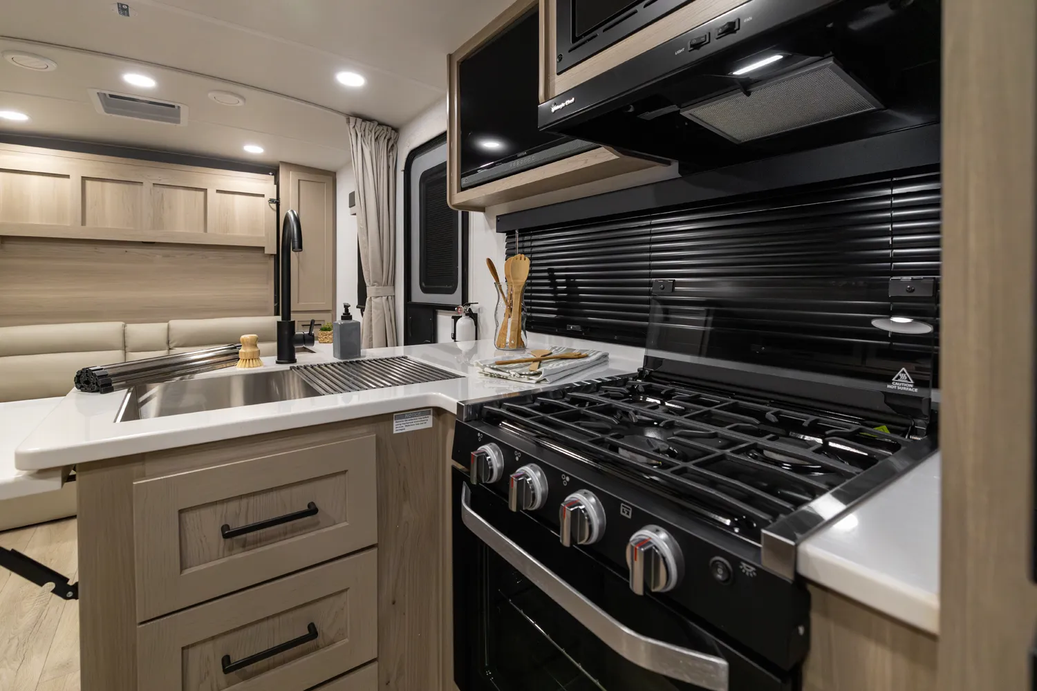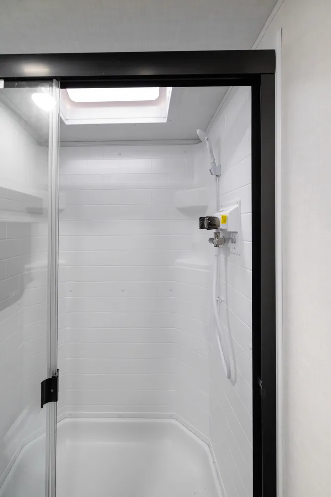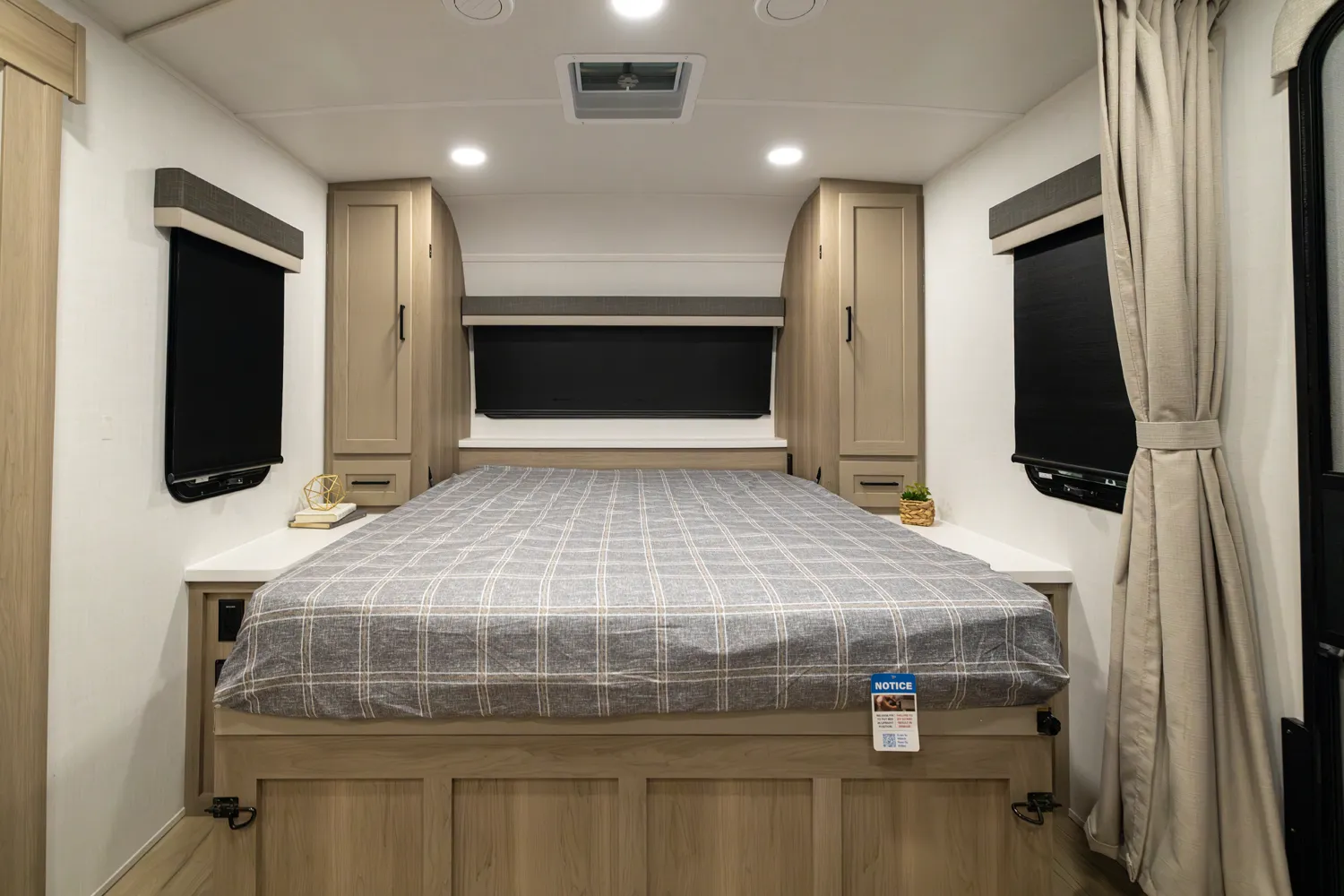 The 2214S delivers a smart, comfortable layout with a front Murphy bed that maximizes living space by day and provides a restful sleep at night. The U-shaped dinette offers plenty of room for meals, games, or extra sleeping space when needed. A large rear bathroom with a rectangular shower adds everyday comfort and convenience making this floor plan a great choice for couples or small families who want big features in a compact trailer.