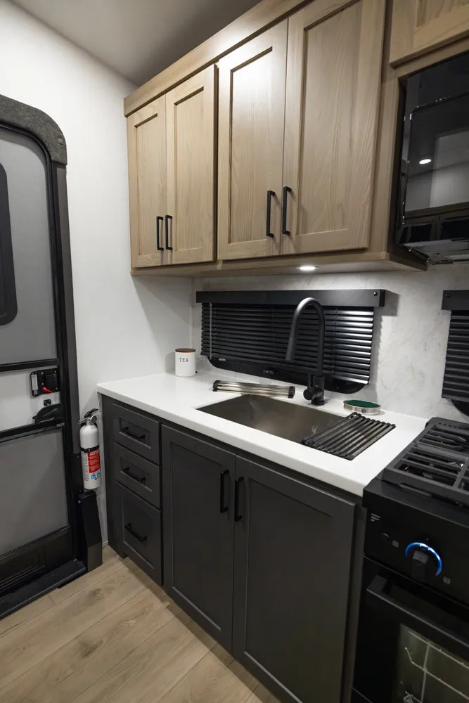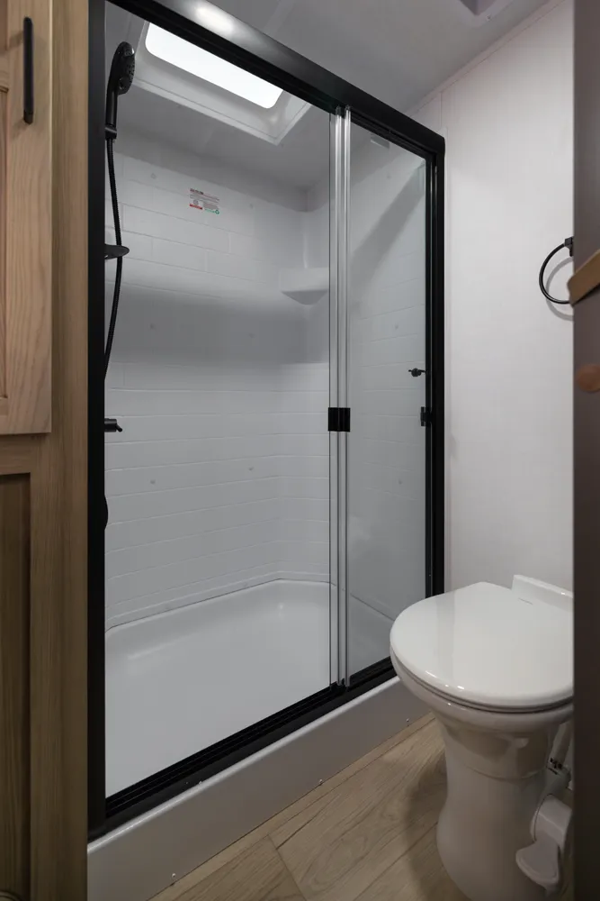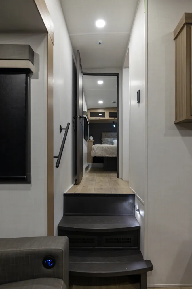 This under-30' fifth wheel packs luxury into a compact design! Enjoy a spacious living area with a 67" theater seat, 44" dinette, and entertainment center with TV. The kitchen offers a pantry, fridge, and plenty of counter space, while the private front bedroom includes a queen bed (king optional) and wardrobe storage. With a roomy bathroom, pass-thru storage, and a 20' awning, it’s the perfect blend of comfort and easy towing.