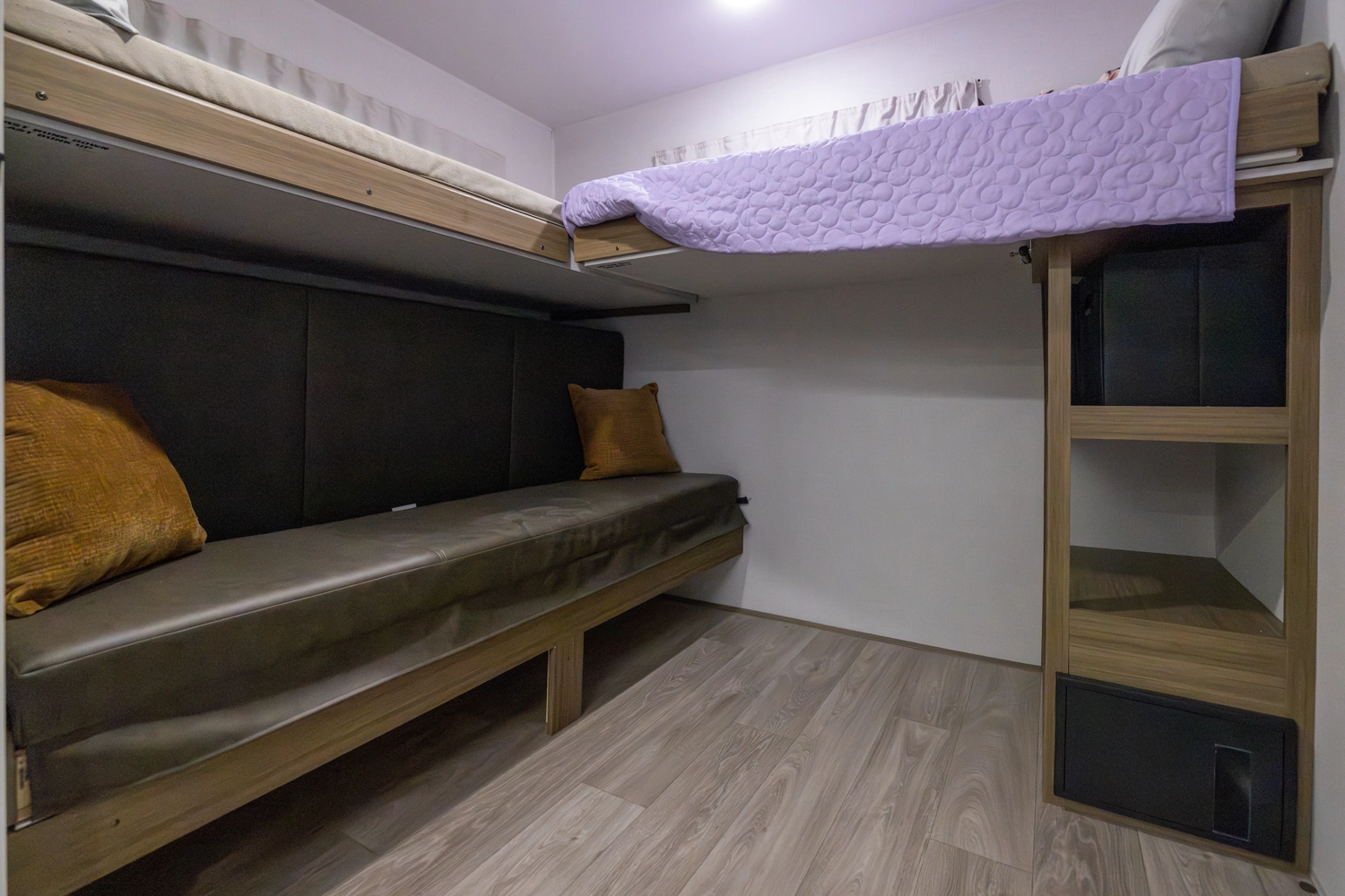 The 29VBUD is a versatile bunkhouse with lots of space for everyone to come along. The front bedroom is designed for a good night's sleep, while the rear bedroom provides the MOST versatile bunk room with the Versa-Bunks and Versa-Queen. Versatility does not stop there as this unit also has the Versa-Lounge and Stow N Go Storage. The well-equipped kitchen and walk-in pantry add the finishing touches to this awesome floorplan.